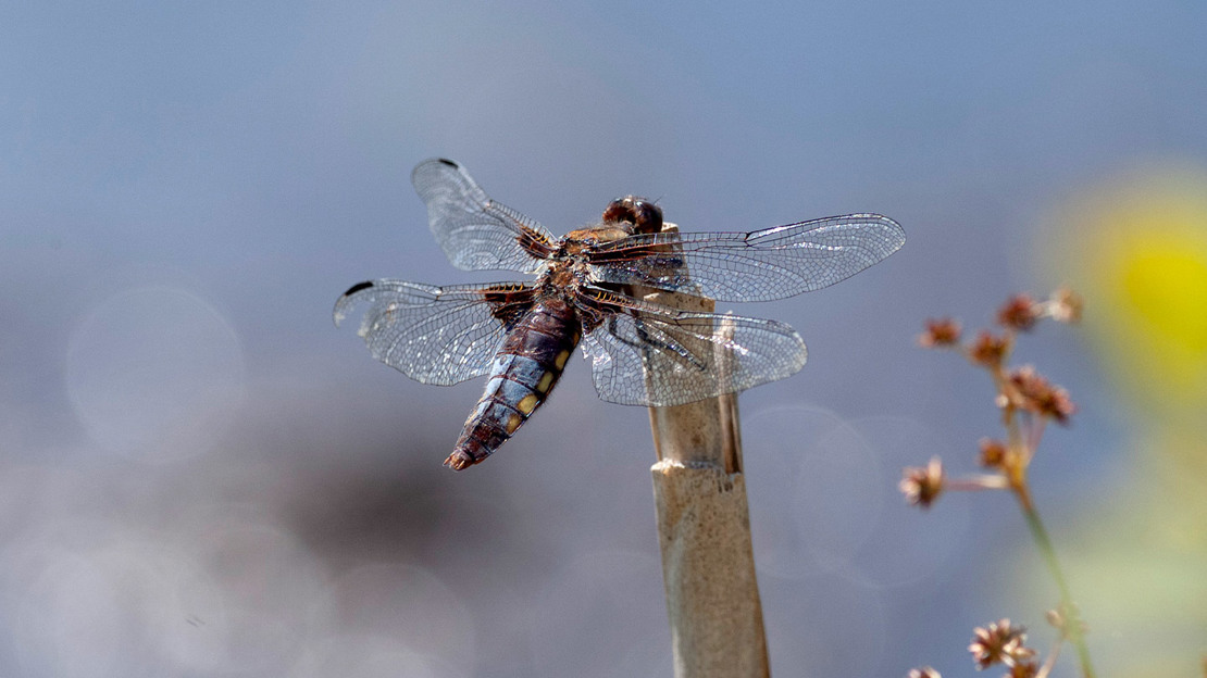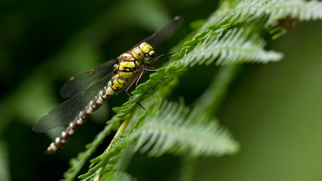 - Appearance: One of the larger dragonflies in the UK, they’re brown with thick yellow strips on their sides. Males also have small blue markings.