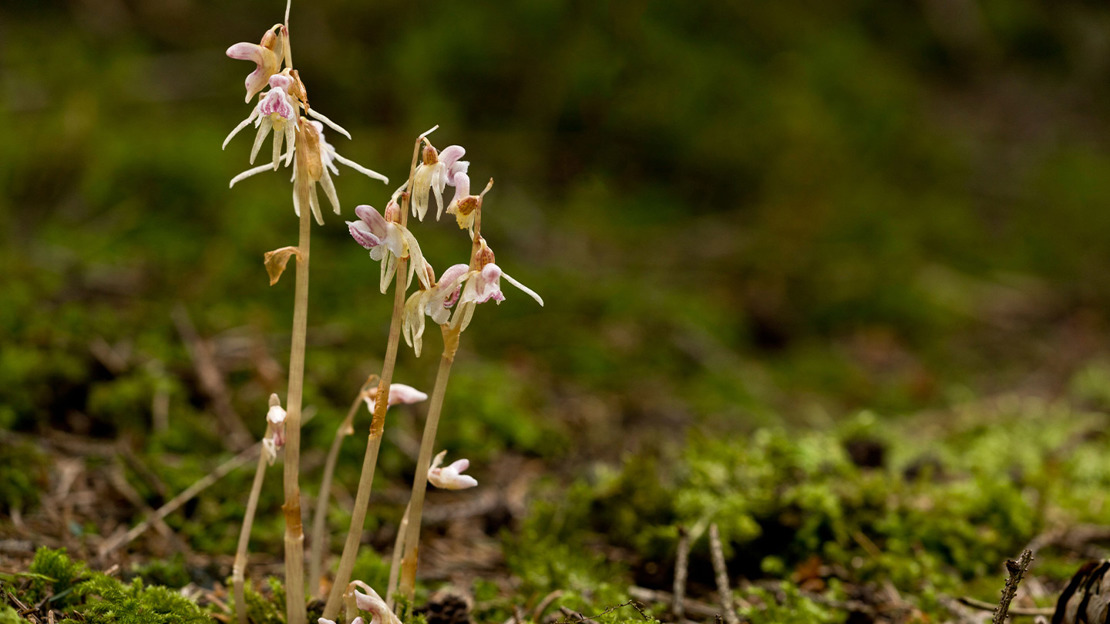 This species is one of the rarest wild orchids. It can spend most of its time underground and it can have up to 10-year gaps between flowering. It can be described by its creamy-white flowers where the lip has some small pink spots. It has no leaves and is dependent upon the fungi in the soil for its survival.