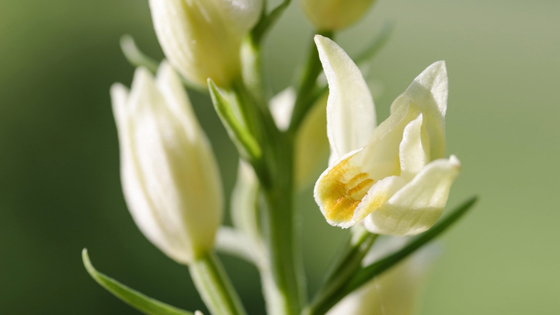 These plants are a slow grower, taking at least eight years to develop from seed and then the flowering can occur two or three years after that. This being said this species produces a beautiful white flower that does not open fully so the yellow lip is often not seen. It can grow up to 60cm in height and can have up to 16 flowers on each stem. It is commonly found in South-east England and south east Wales but is in decline due to a loss of habitat.