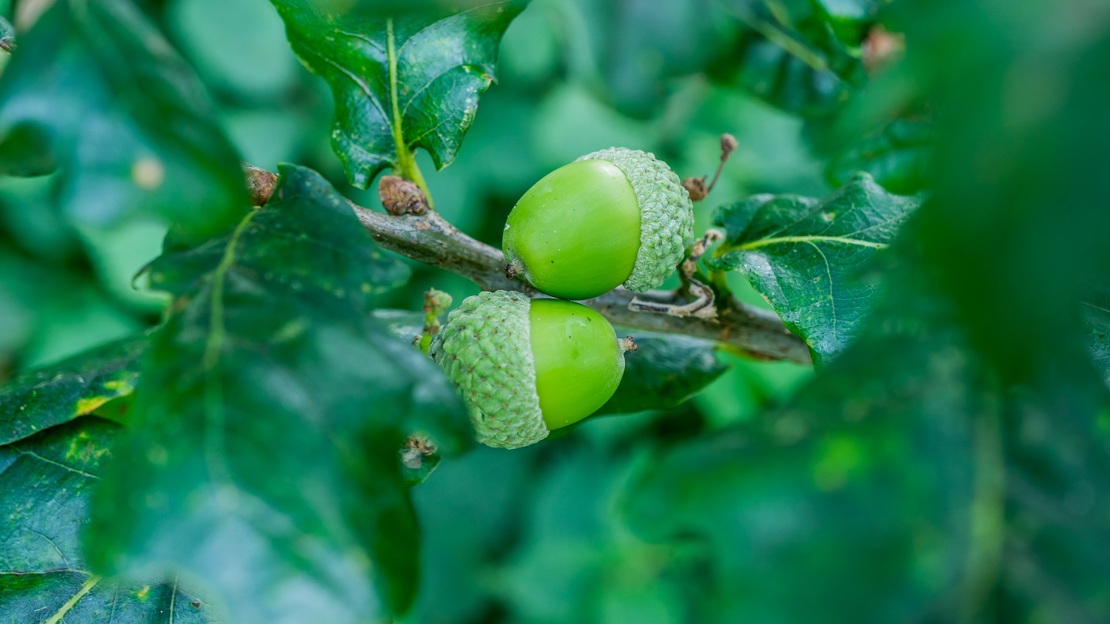 Acorns are the fruit of the oak tree. They contain the seeds that can grow new oak trees, and falling to the ground is part of the tree’s lifecycle – this is how it reproduces. Having reached the ground, the acorns can grow into new oak trees or be carried off to new locations by wildlife.