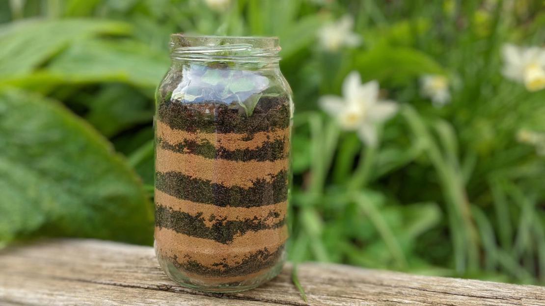 - Pour a thin layer of sand into the bottom of your bottle. Cover this with a thick layer of soil. Repeat until your bottle is three quarters full.