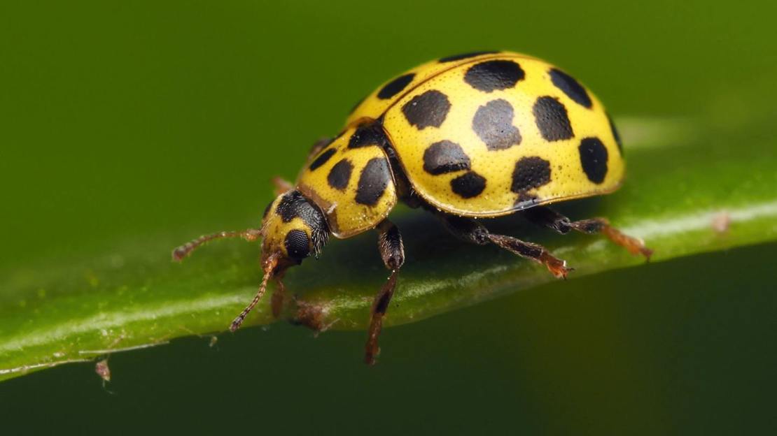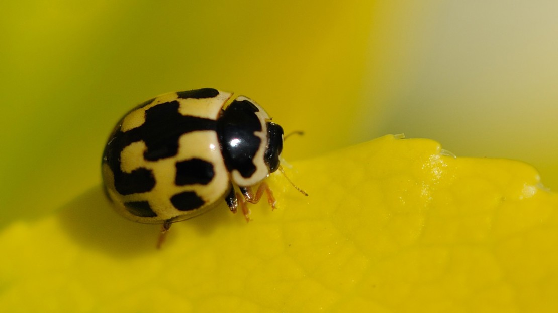 A small ladybird which is easily overlooked. Yellow with black, rectangular spots that often merge together. Can have between 4-14 spots.