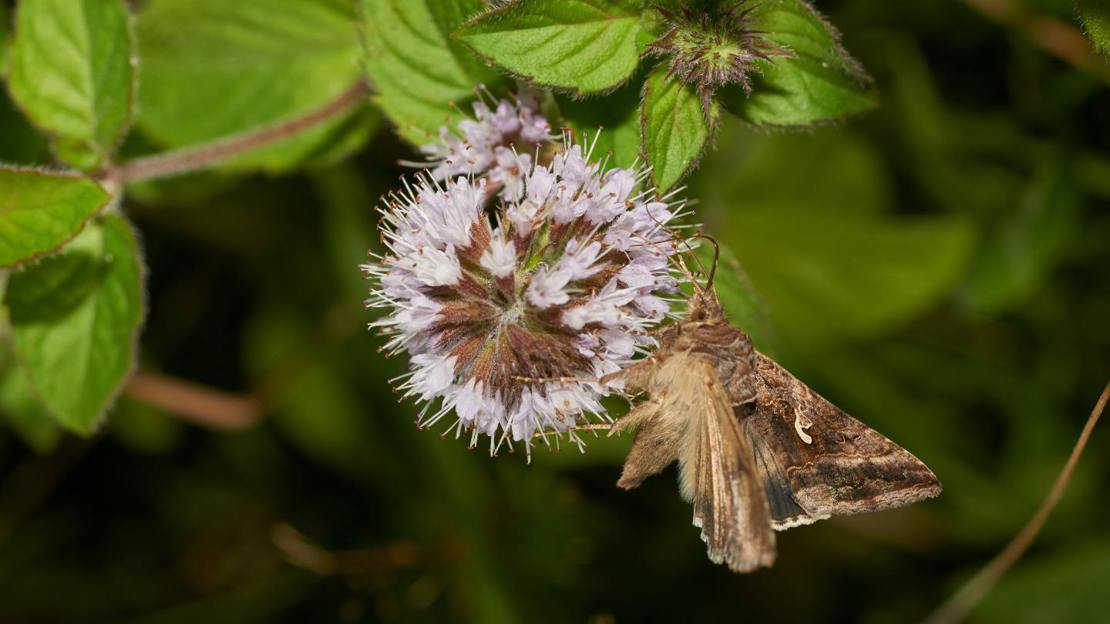 Caterpillars feed on mints and thymes, including garden cultivars.