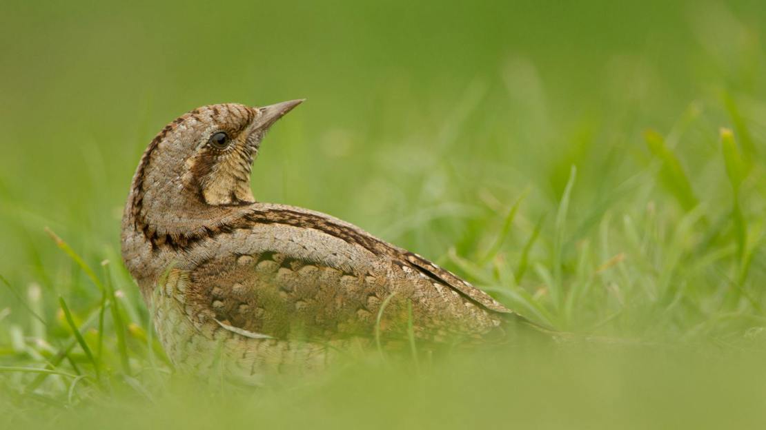 These birds are masters of camouflage. Look for mottled brown and grey patterning with barred, buff brown underparts and a dark line running from behind the head down the back. It's not uncommon for juvenile starlings to be mistaken for wrynecks, although they are more uniformly brown all over.