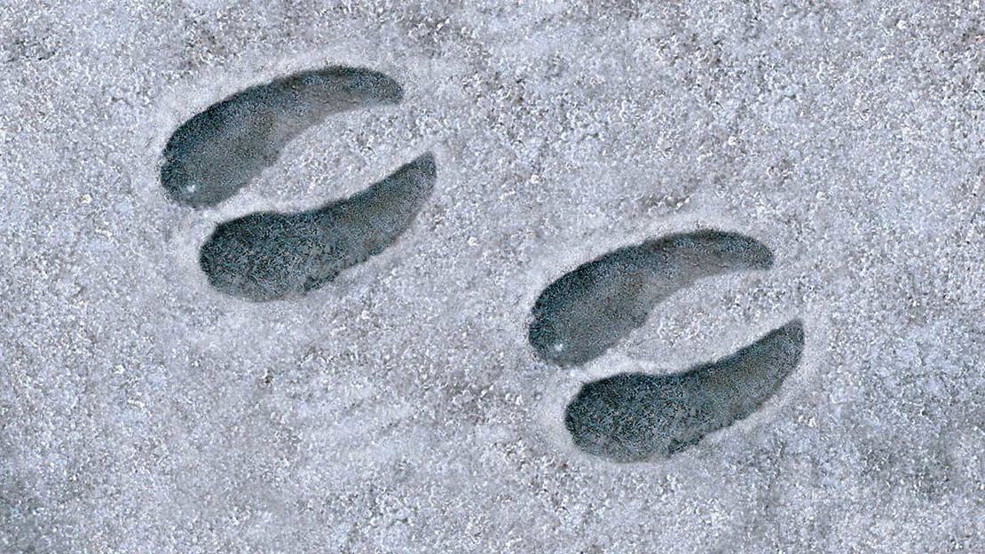 Appearance: Asymmetric footprints might show only four of their five toes. You may be able to see the webbing, but usually no claw marks.
