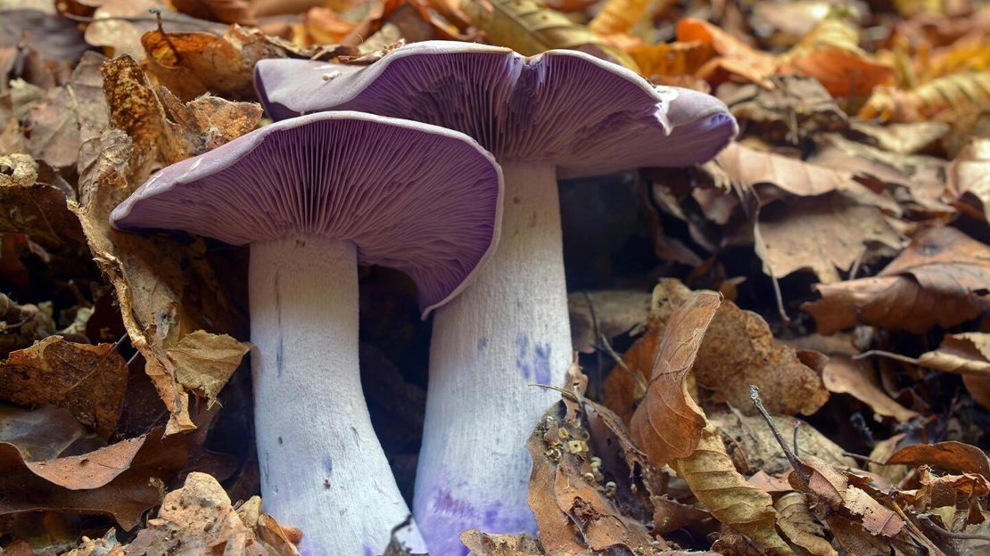 The wood blewit does look a little like naked skin. When mature, the mushrooms are a beautiful pinky-lilac colour, while younger specimens are a more blue-tinged violet.