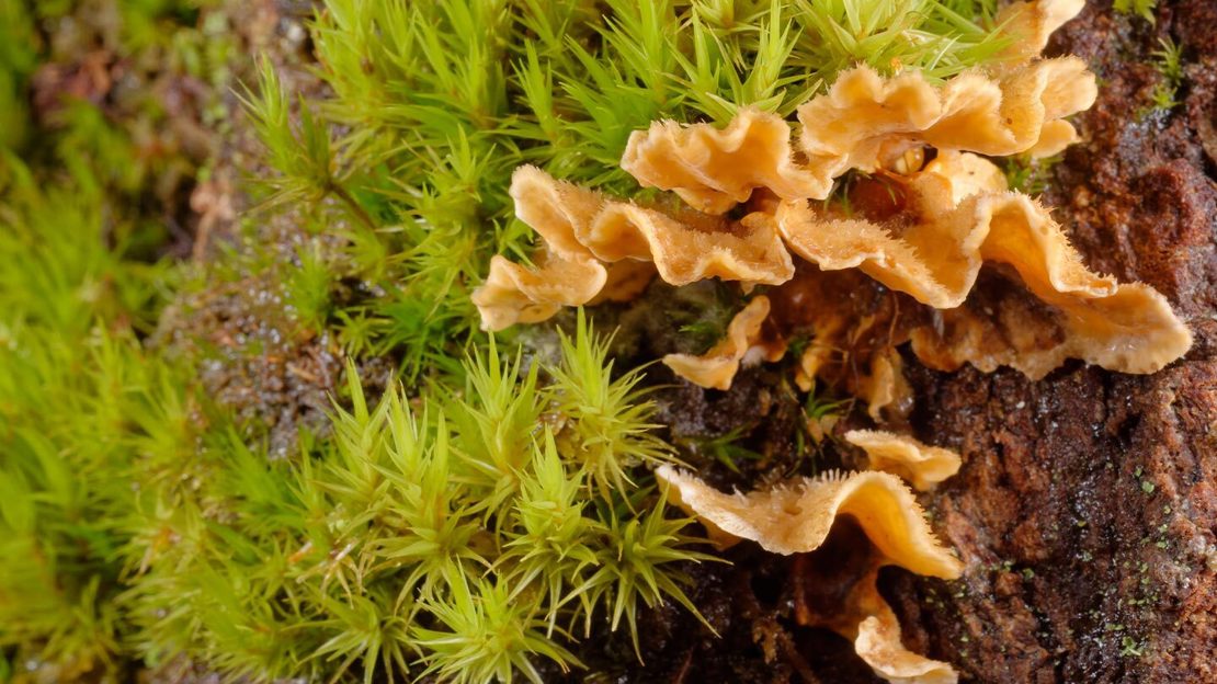 A name that would make your grandmother blush! Thankfully, whoever christened this fungus didn’t have their mind in the gutter. Break down the scientific name and you’ll find that Stereum means ‘tough’ – very apt for crust fungi – and hirsutum means ‘hairy’, which refers to the upper surface of this fungus when it’s young and fresh. The ‘curtain’ part is thought to reflect the rippled edges of the fruiting body, which look like partly drawn curtains.
