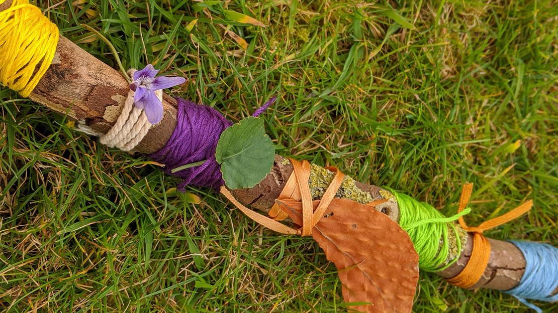 Look for a good-sized stick and wrap some colourful wool around it. As you’re on your walk, keep your eyes peeled for interesting objects that will remind you of your journey – such as a colourful flower or a pretty leaf – and attach them to your stick. (Please don't pick wild plants and flowers. Look for petals or leaves that have fallen to the ground.)