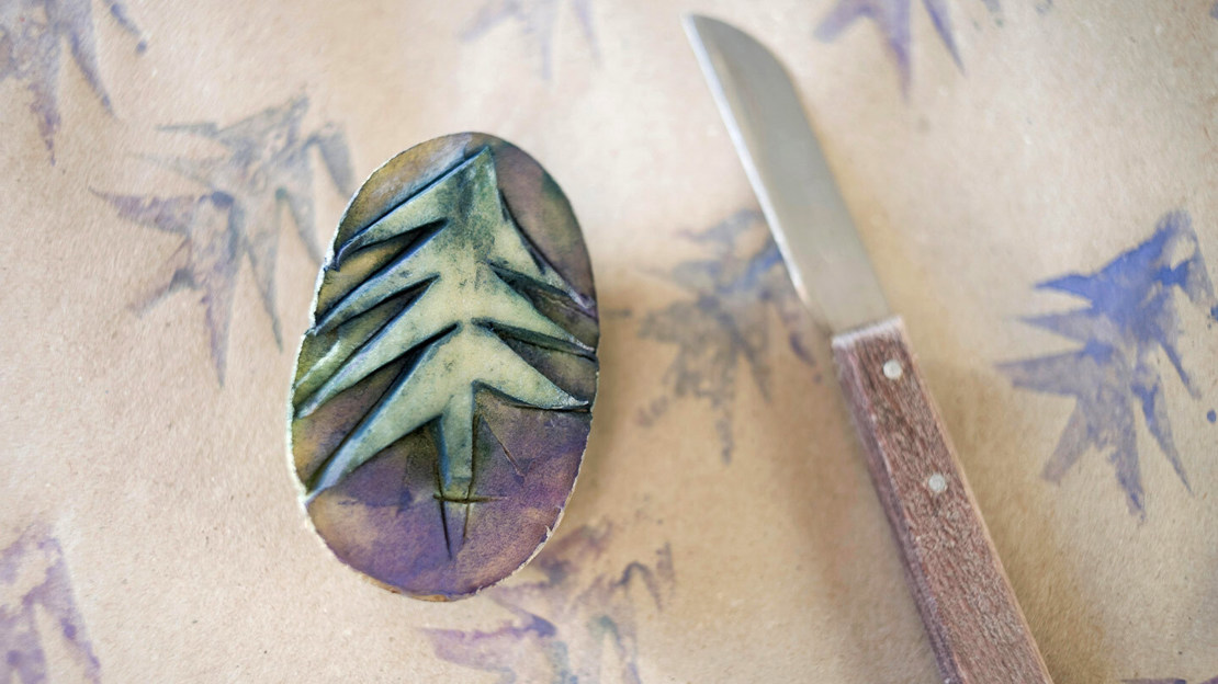 Rather than buying new gift boxes for Christmas, save your old delivery boxes or packaging boxes for the festive season. Decorate them yourself with drawings and paintings inspired by nature or go back to basics by potato printing the box. Simply finish off with a ribbon.