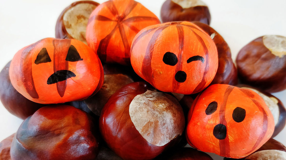 Transform shiny conkers into miniature pumpkins! Simply paint them orange and add spooky faces to make cute decorations you can place around your home.