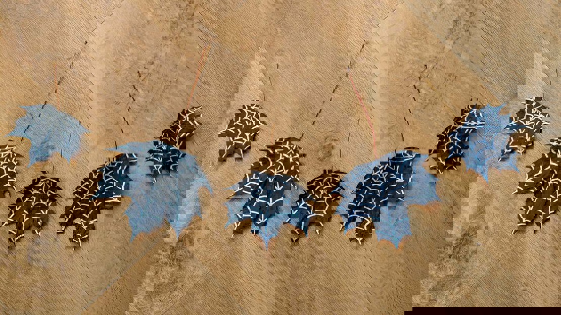Take your spooky décor to the next level with this web-tastic leaf craft. Start by gathering fallen leaves – maple leaves are ideal. Paint them black, then draw along the veins in white or silver pen to create intricate spider webs. Tie ribbon around the leaf stalks and hang up your bunting with the rest of your Halloween decorations.