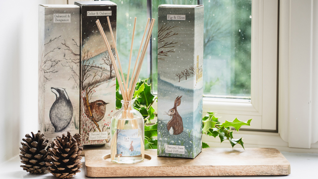 Our candles, scented with aromatics like fig, olive, cedar and oakwood come in beautifully illustrated boxes featuring woodland wildlife. They'll help you to create an immersive and inviting ambience.