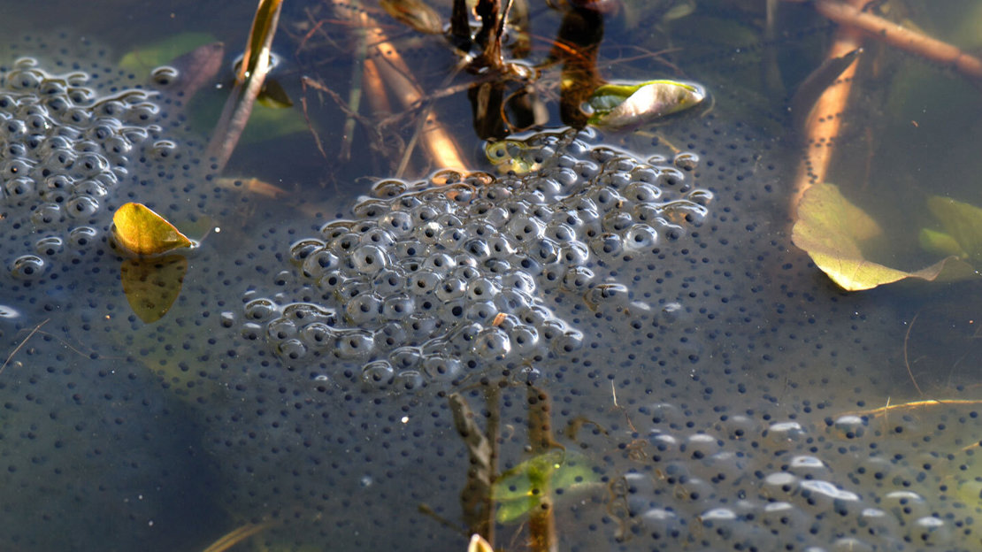 Female frogs and toads both release spawn (eggs) when they breed. Luckily, the difference between frog and toad spawn is easy to see: frog spawn is laid in gooey clumps, whilst toad spawn floats in stringy lengths. You’ll usually spot toad spawn wrapped around vegetation in slightly deeper water.