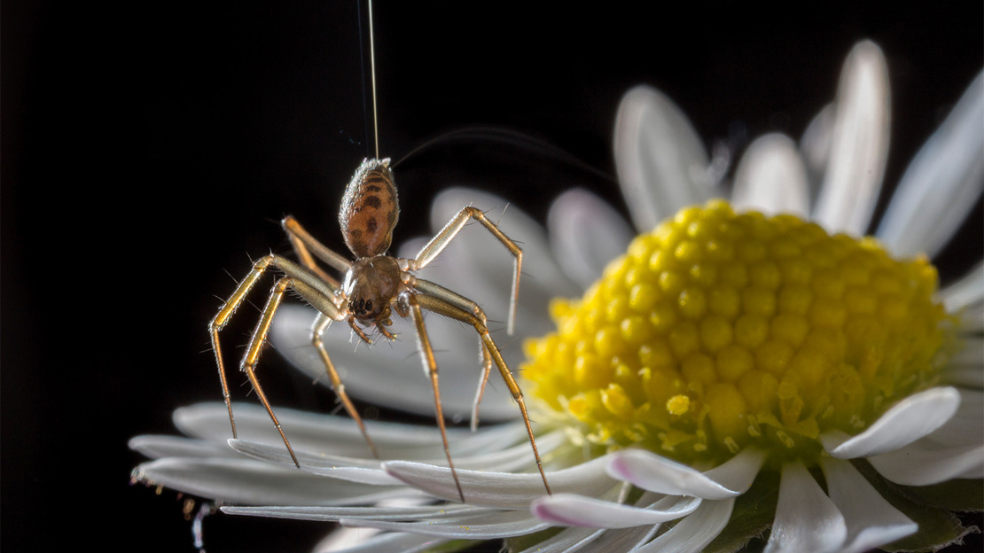 The money spider is most famous for taking flight in a behaviour called ballooning. It crawls to a high vantage point, releases several strands of silk and, once they’re caught by the breeze, lets go of its perch and is carried into the air. Most of these flights are short-lived, but the spider can sometimes be lifted into the jet stream and survive a trip of thousands of kilometres!
