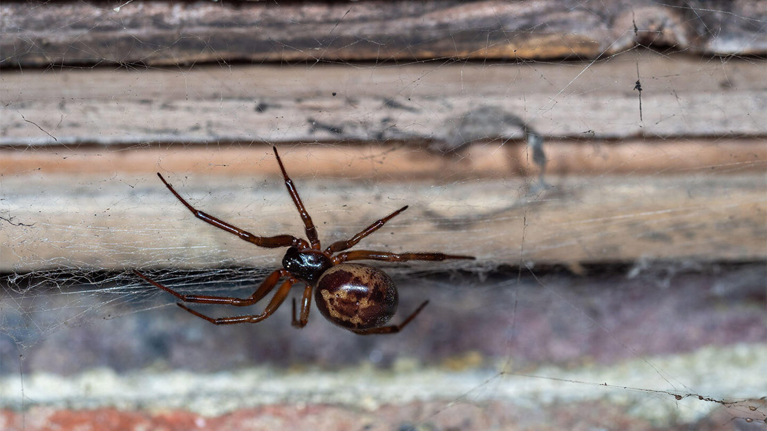 There are three common species of false widow spider in the UK – the others are the rabbit hutch spider and cupboard spider. Growing from 7–10mm (males) or 8.5–14mm (females), the noble false widow is the largest of the three. It has a dark, shiny abdomen with a pale skull-shaped pattern and is thought to have been introduced to the UK in the 1800s, in shipments from the Canary Islands and Madeira. Its web is a tangle of threads – perfect for catching flying insects – and usually hangs 1.5 metres off the ground in the corners of kitchens and conservatories.