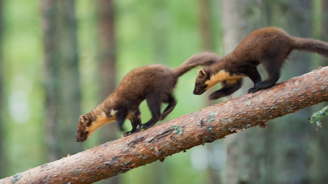 Adorable yet ferocious, these formidable hunters are well suited to temperate rainforests which provide abundant food sources, including birds, voles, rabbits and insects as well as berries, fungi and eggs. Hunting and habitat loss have pushed these elusive mustelids to the brink of extinction in the UK.