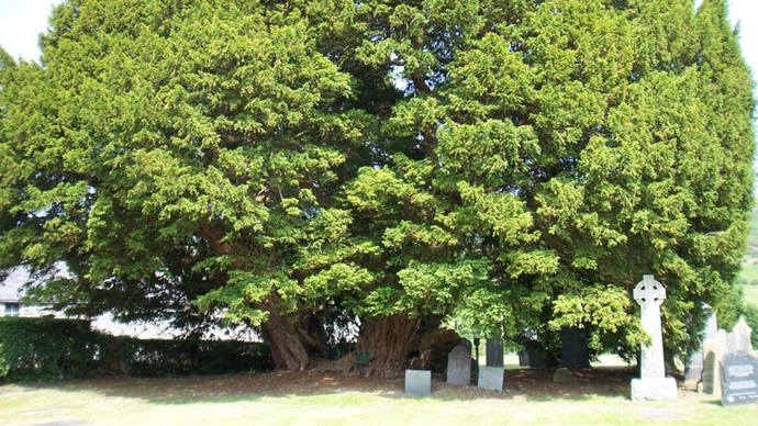 The Defynnog Yew is the largest of four yew trees in the churchyard and grows from a mound that measures 8 metres (26 feet) across.
