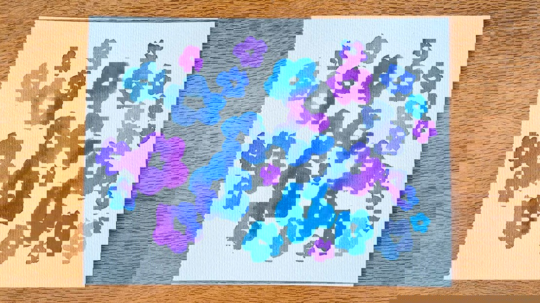 - Now dab another colour into the same flower shape. Watch as it mixes with the first colour and creates new shades!