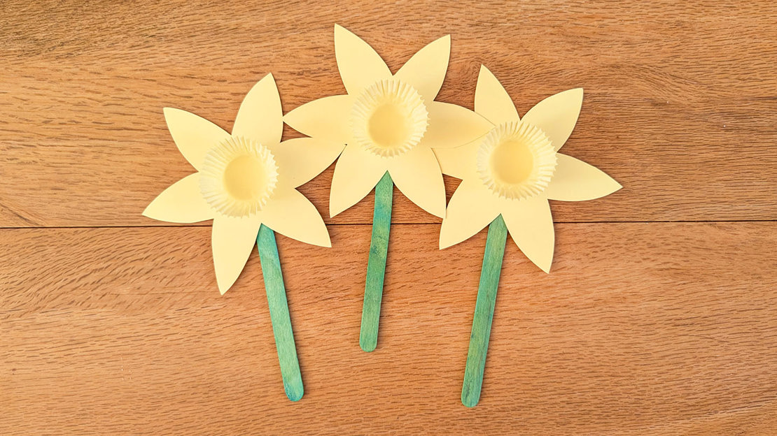 A sunny swathe of daffodils is a cheery sign of spring. With this art idea, you and your children can make your own blooms to brighten up your home.
