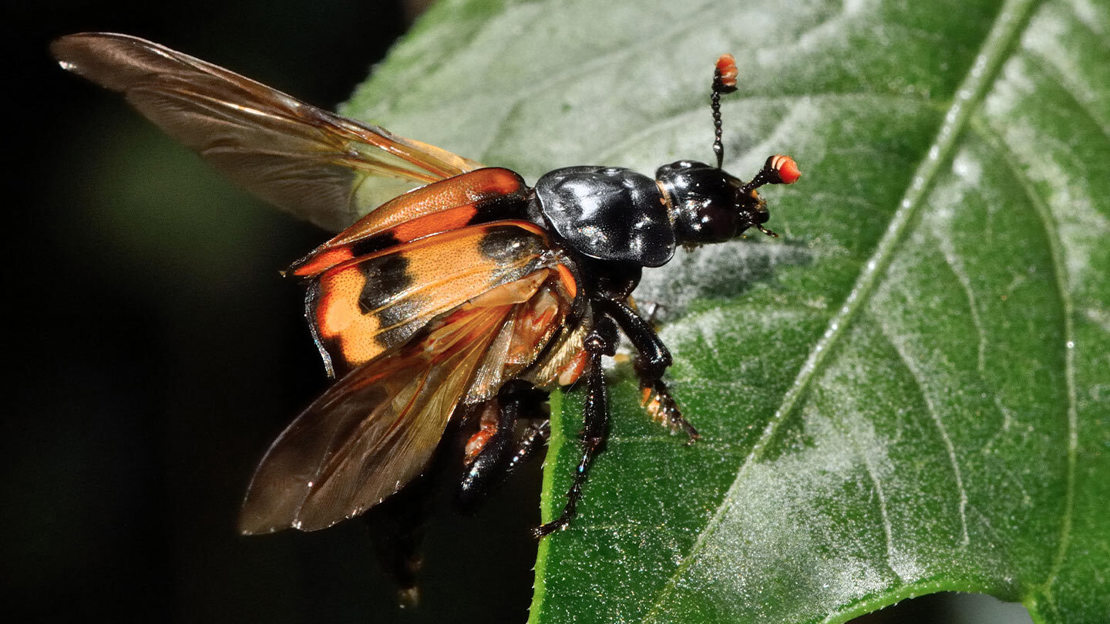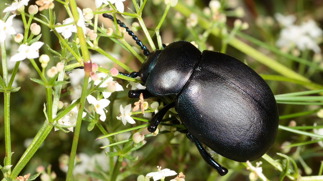 Thanks to their chewing mouthparts, beetles have incredibly varied diets. While 7-spot ladybirds munch on aphids, stag beetle larvae rely on rotting wood, sexton beetles prefer decaying animals and blue ground beetles prey on enormous slugs such as the ash black.