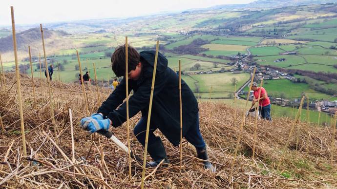 What we want them to do is repurpose a percentage of their land for woodland creation, whether that's through agroforestry or native woodland creation on their very marginal land. So what we've been doing today with our amazing team of volunteers is tree maintenance, and on bracken sites where you've planted trees, what that basically means is removing the bracken from around the saplings to ensure that they get good growth and to ensure that the volume of bracken is not there in the autumn and winter, when the bracken dies back and it doesn't fall on top of the trees and snuff them out basically.
