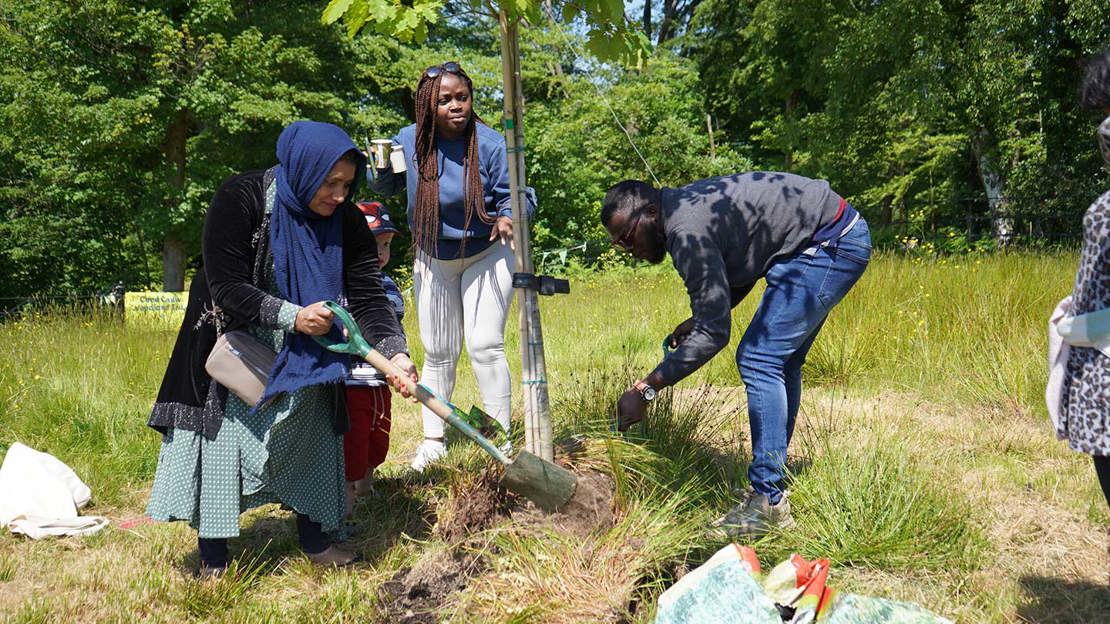 To celebrate, Windrush Elders were invited to a special event at Brynau. It was an opportunity to celebrate the contributions of the Windrush generation, and to help with putting the first few trees into the ground to form the new Windrush Grove.