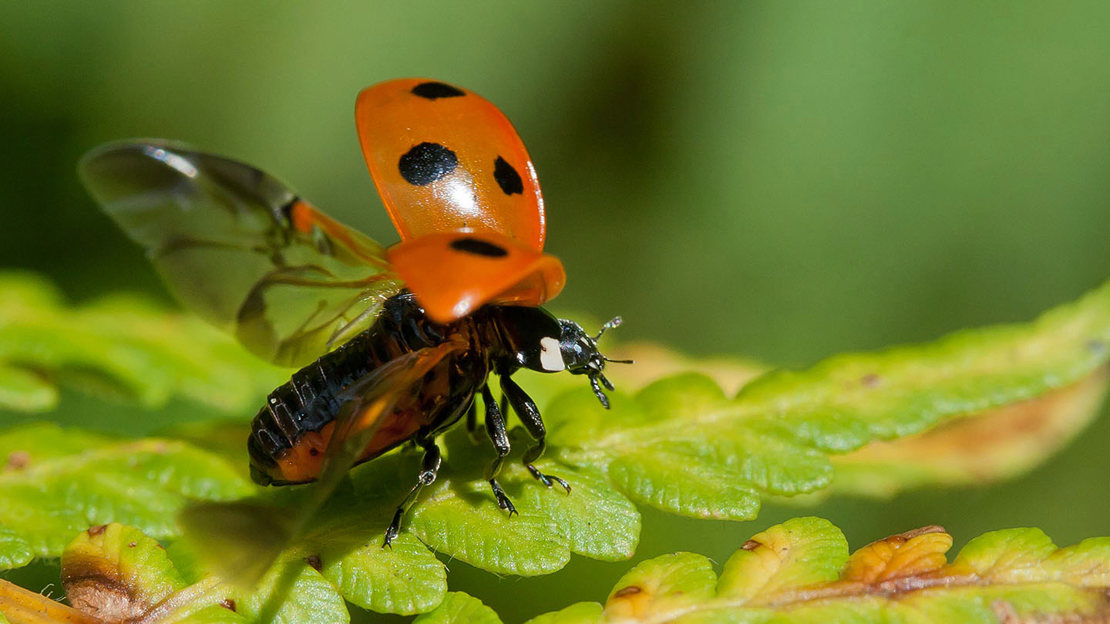 The 7-spot ladybird hibernates during the winter months, resting in vegetation, hollow plant stems and garden sheds. You can spot it when it emerges in spring, usually from March to April, in search of food. They’re very common so look out for them in woods and urban areas.