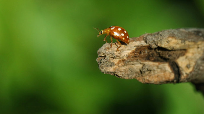 Look out for orange ladybirds between April and October in broadleaf woodland. You might see them on the leaves of their favourite trees: ash and sycamore.