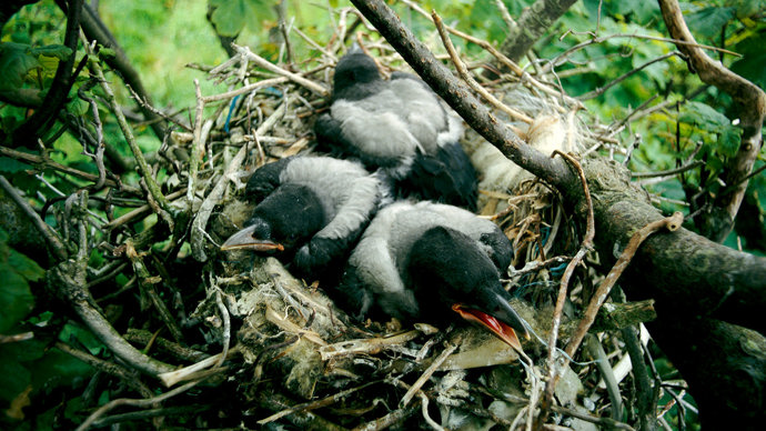 Hooded crows are omnivores, eating a diet made up of carrion, insects, grain and eggs. They will steal eggs from other birds’ nests and are also known to eat chicks on occasion. They can often be seen feeding together in groups.