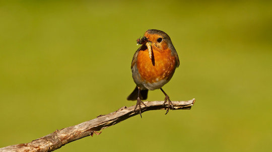 Robins are widespread and their population is thought to be stable. They are threatened by harsh winters, however, losing up to 10% of their body weight during just one freezing winter night. You can help robins build up their fat reserves during the winter by putting bird food, such as mealworms, on your garden bird table – they are a favourite for robins.