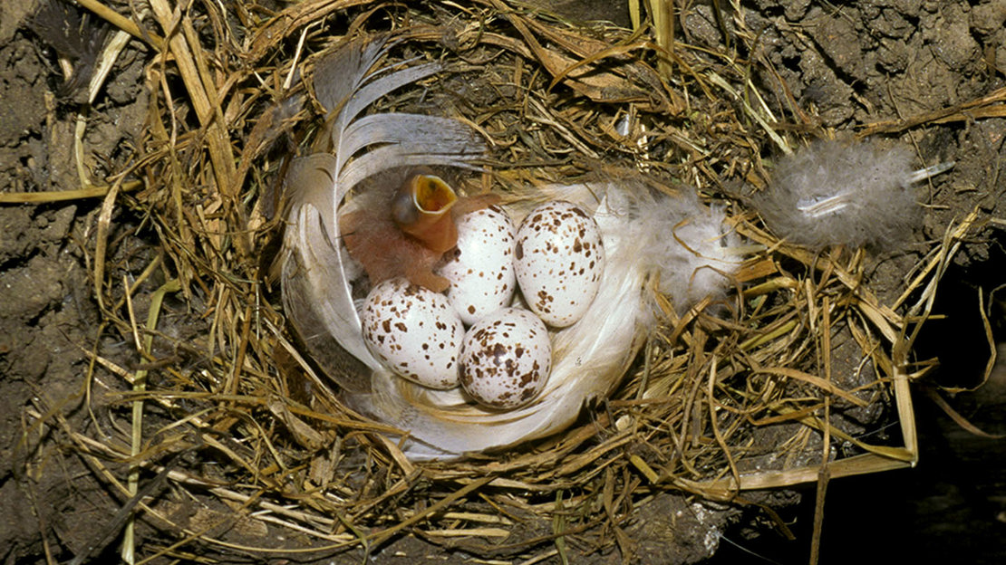 Swallows produce two or three clutches of around four eggs per year. They build their cup-like nests on sheltered ledges, beams and joists in sheds and outbuildings. Each nest is constructed from mud interwoven with grasses and may be reused season after season.