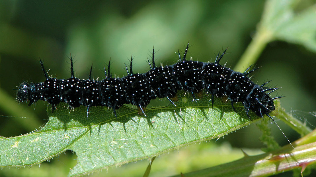 Caterpillars: eat the leaves of stinging nettles and hop.