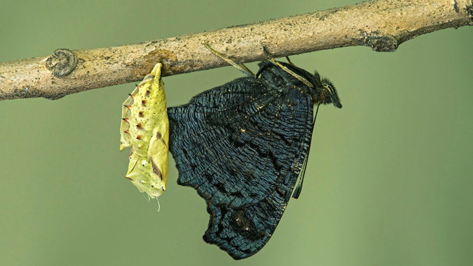 Adults hibernate over winter, usually in dark spaces like inside sheds and holes in trees. They fold their wings up and sleep; their dull wings allow them to blend in and rest undisturbed. Peacock butterflies then wake from hibernation during the spring, sometimes as early as March.