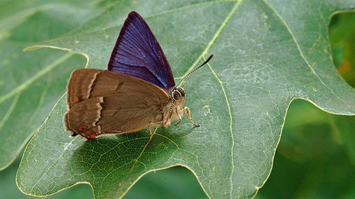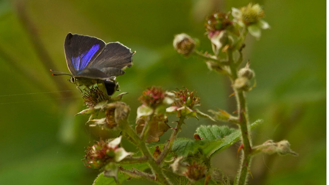 Small yet stunning, the purple hairstreak is rarely seen as it spends much of its time fluttering high up in the tree canopy. Reliant on oak woodland, this little butterfly is never far from oak trees.