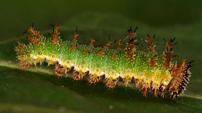Caterpillars: green and covered in large, multi-branched brown spines.