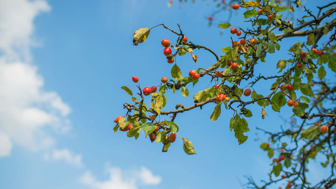A symbol of fertility and a forager's delight. Crab apple trees are associated with love and marriage and its small, hard fruits make an exquisite, jewel-coloured jelly.