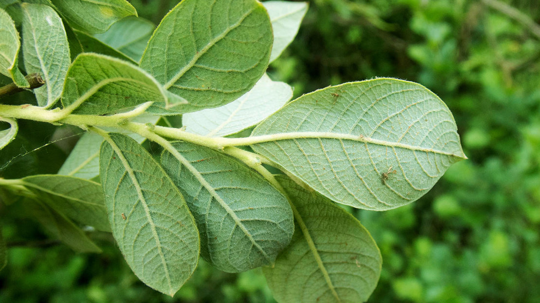 Unlike most willows, the leaves are oval rather than long and thin. However, unlike goat willow, the leaves are at least twice as long as they are wide. They have a fine silver felt underneath with rusty hairs beneath the veins.