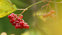 Round, translucent, bright red berries appear in autumn in hanging bunches.