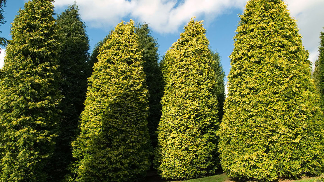 At the centre of many neighbour wars, Leyland cypress can reach great heights very quickly. It’s one of the fastest growing conifers and often towers over houses and gardens.