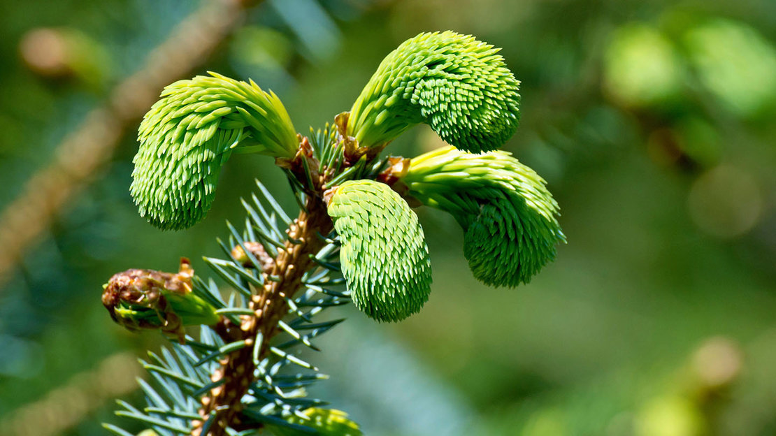 Pollinated by wind, female flowers develop into cylindrical, pale-green cones which ripen to a pale creamy-brown in autumn. The seeds within the cones are small and winged.