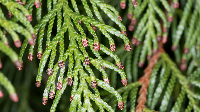 Western red cedar is sometimes called an 'arborvitae' which is Latin for ‘tree of life’, because the evergreen foliage lives without any obviously visible buds.