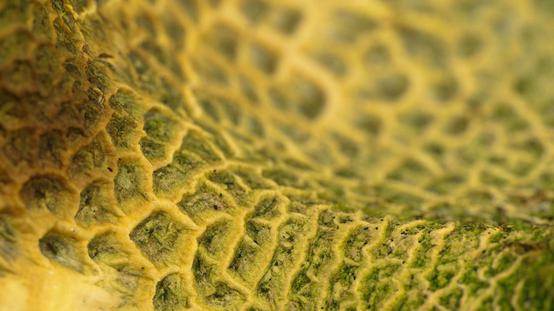 Flesh: the ‘cap’ is rounded, can be 4–12cm across and 3–6cm tall. The tough skin is dirty-yellow to ochre-brown and covered in coarse, warty scales in irregular shapes. As the fungus matures, it can turn ochre-brown or green.