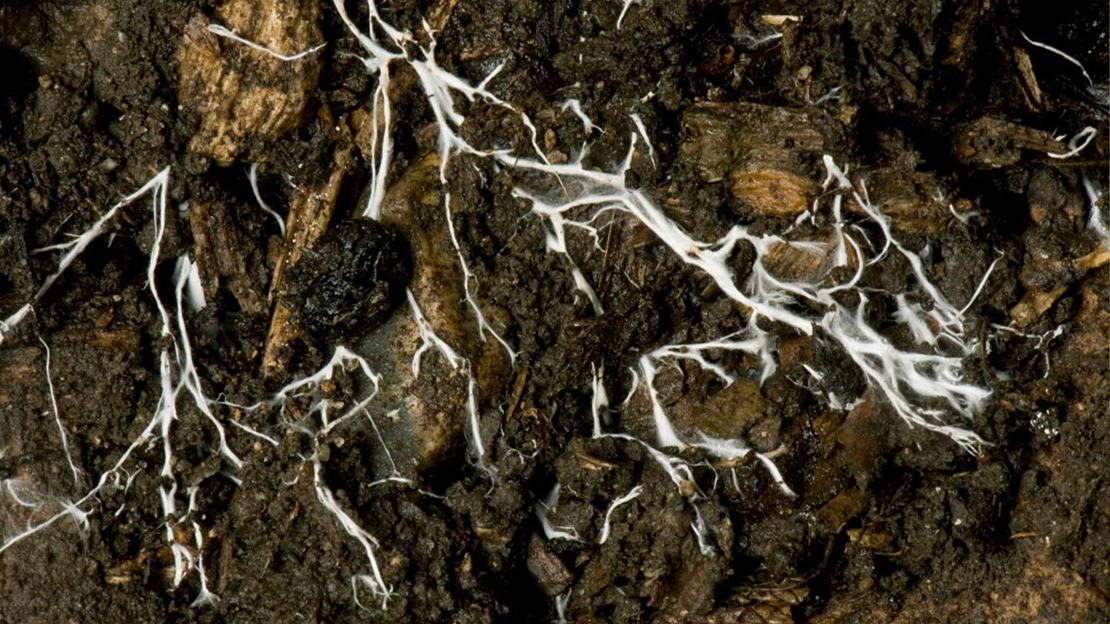 Also known as the wood wide web, the soil is full of strands of fungus called hyphae. The hyphae connect with the roots of trees and help them take in, and share, resources like water and nutrients in exchange for sugars made during photosynthesis. Mycorrhizal networks are still being studied, and may be used by trees to communicate distress signals which alert nearby plants to raise their defences.