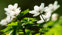 Flowers: petals are white, with a pinkish tinge. Many distinct yellow anthers are visible.