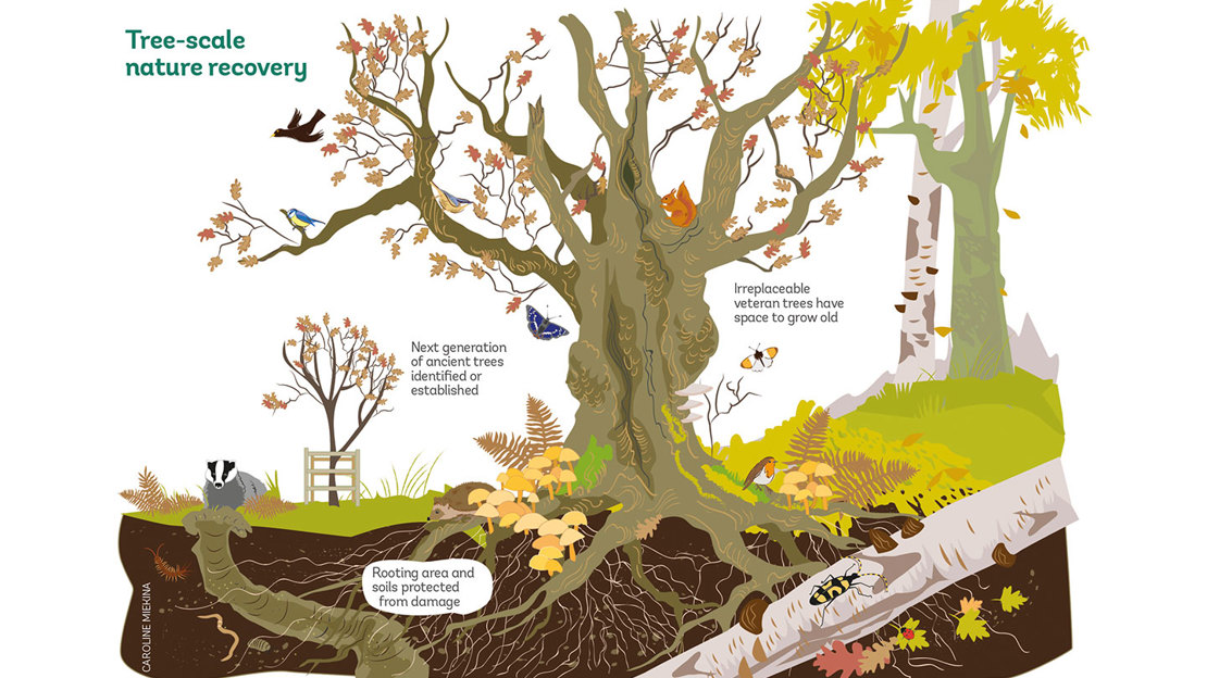 Individual trees and groups of trees outside woods – scattered through the landscape in hedges, fields, churchyards, gardens, parks and housing estates – have a hugely important yet unsung role in nature recovery. Take the oak tree – a single old oak can support 2,300 species, making it an ecosystem in its own right.