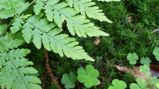 A mix of broad-leaf and coniferous trees, glade and open heathland. From the path glimpses of the wider heathland landscape can seen.