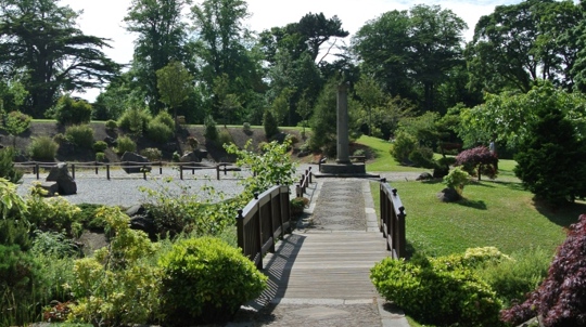 A large community park bordered by woodland, with a children's play area in the centre. It has a small car park, and wide paved paths all around the edge of the park. It is the base for Cramond Football Club.