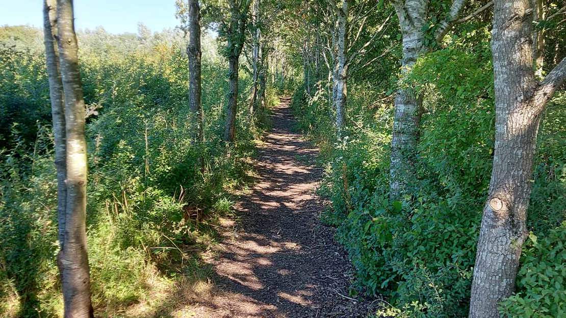 The central paths within the woodland are wide and inviting and incorporate an open area in the middle where there is a wooden seat. There is also a narrow perimeter path enabling a circular walk to be completed. Mainly flat grassy paths with some segments that can be muddy after rain.