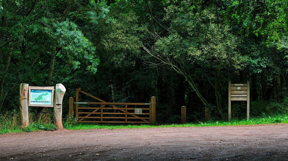 The main entrance is via a kissing gate on the west side of the wood. Here there is a car park, an information board with details of the sculpture trail and other routes, a picnic table and benches.
