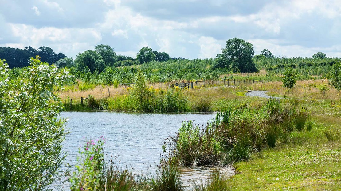 The white route extends to 3km (1.9 miles) and connects the 61 Diamond Jubilee Groves before going past the lake and up to the ancient woodland at the far end of the site, and then returning.